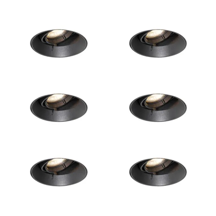 Set van 6 Moderne inbouwspot zwart GU10 rond trimless – Oneon