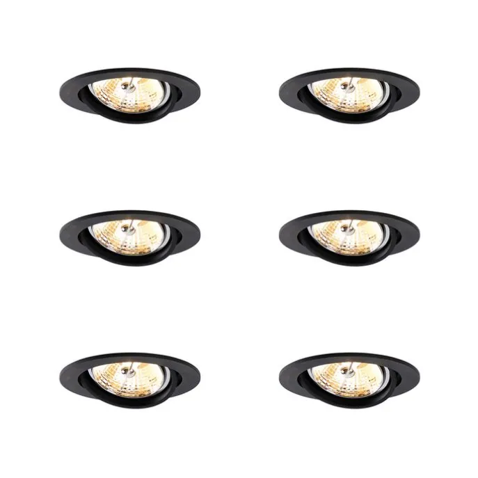 Set van 6 Moderne inbouwspot zwart kantelbaar AR70 – Cisco