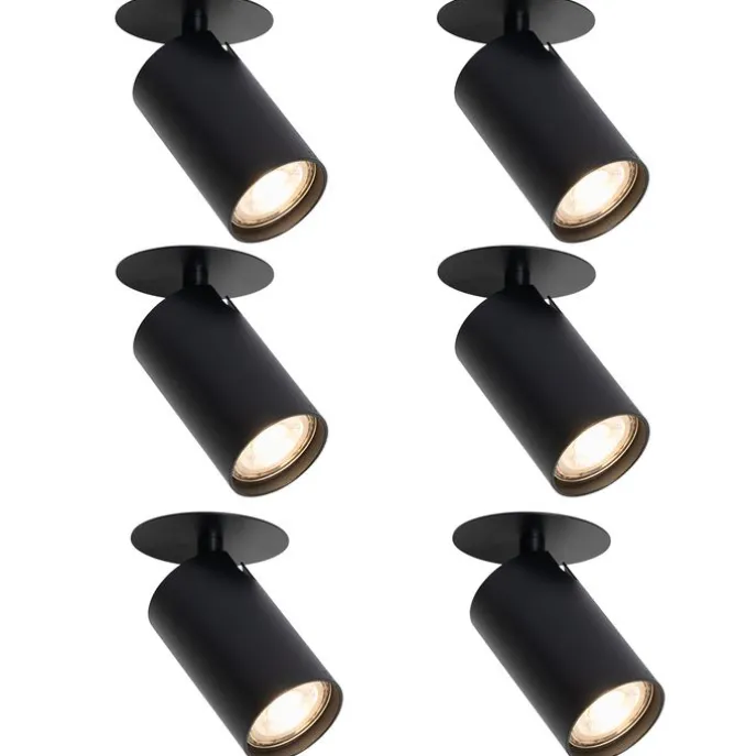 Set van 6 moderne inbouwspots zwart GU10 50mm – Chels