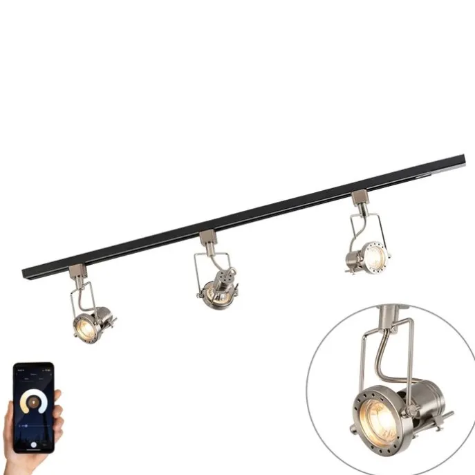 Smart 1-fase rail zwart met staal incl. 3 WiFi GU10 – Iconic Suplux