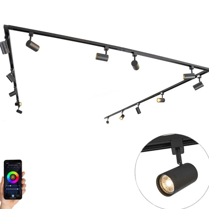 Smart 1-fase railsysteem incl. 14 Wifi GU10 zwart – Iconic Jeana