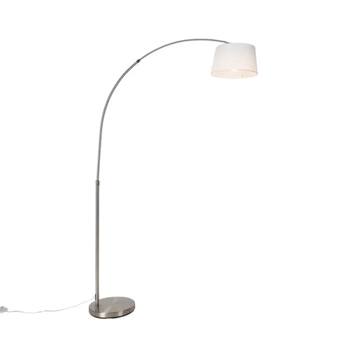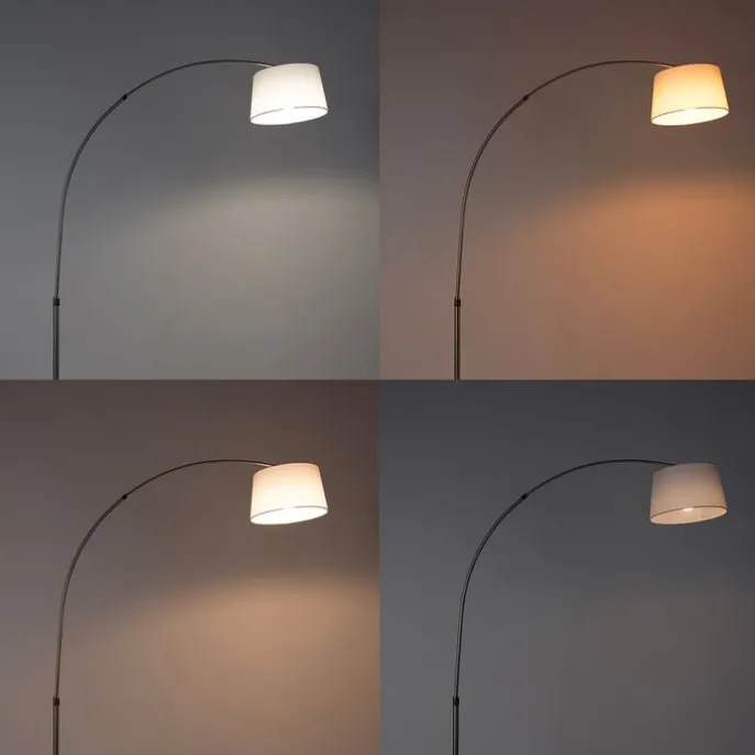 Smart booglamp staal met witte stoffen kap incl. Wifi A60 – Arc Basic
