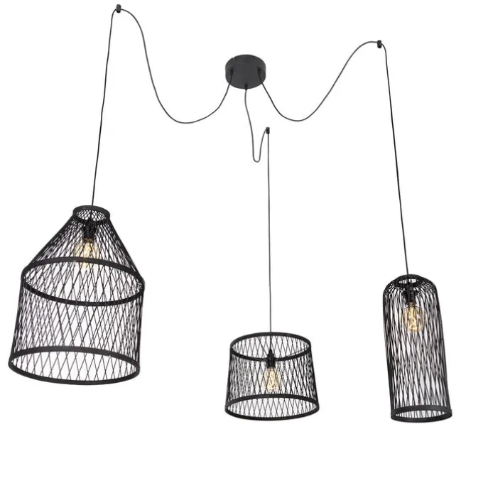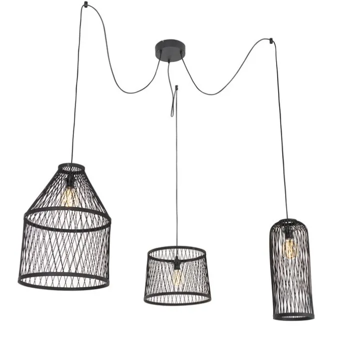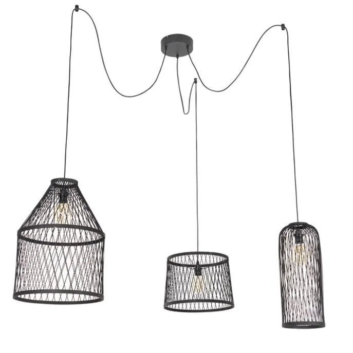 Smart buiten hanglamp zwart rotan 3-lichts incl. 3 Wifi G95 – Calamus