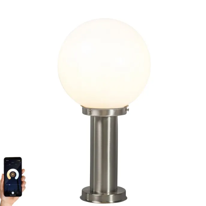 Smart buitenlamp paal staal RVS 50 cm incl. Wifi A60 – Sfera