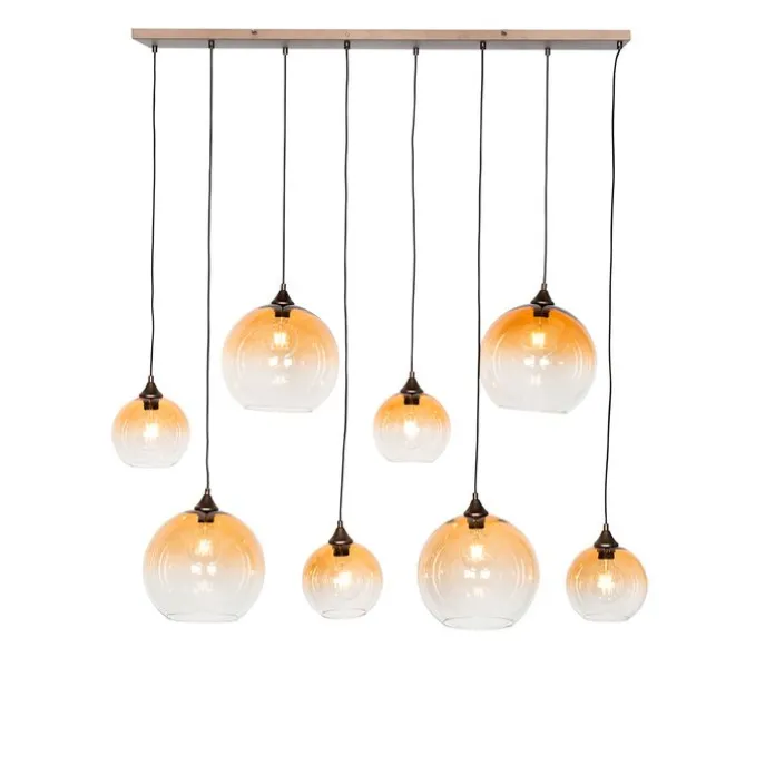 Smart hanglamp donkerbrons met amber glas 8-lichts incl. 8 Wifi G95 – Sandra