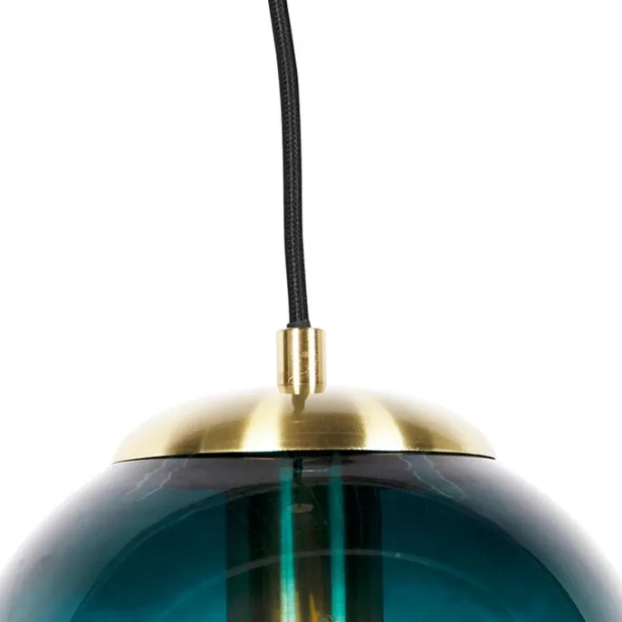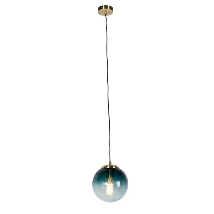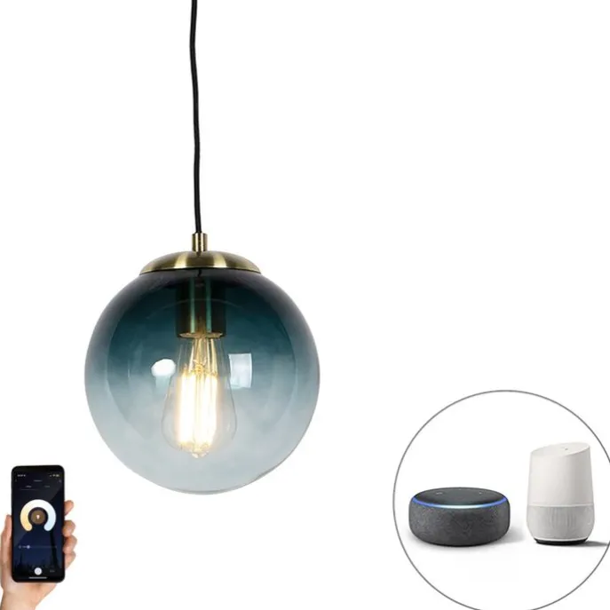 Smart hanglamp messing met oceaanblauw glas 20 cm incl. Wifi ST64 – Pallon