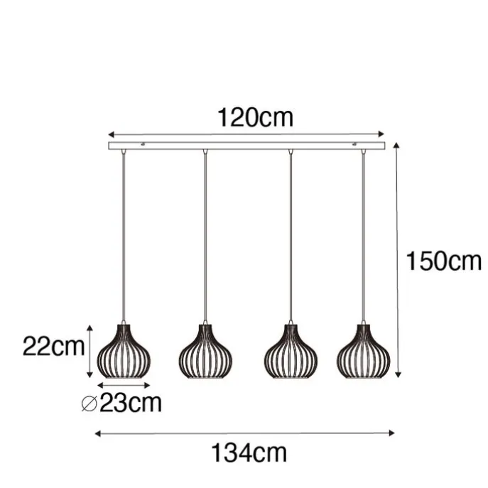Smart hanglamp zwart 4-lichts incl. 4 Wifi G95 – Saffira