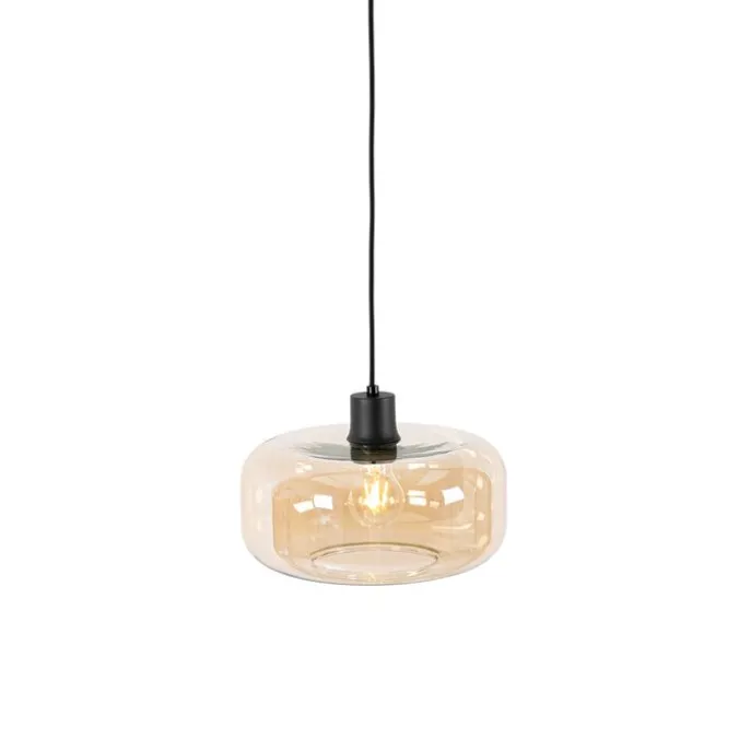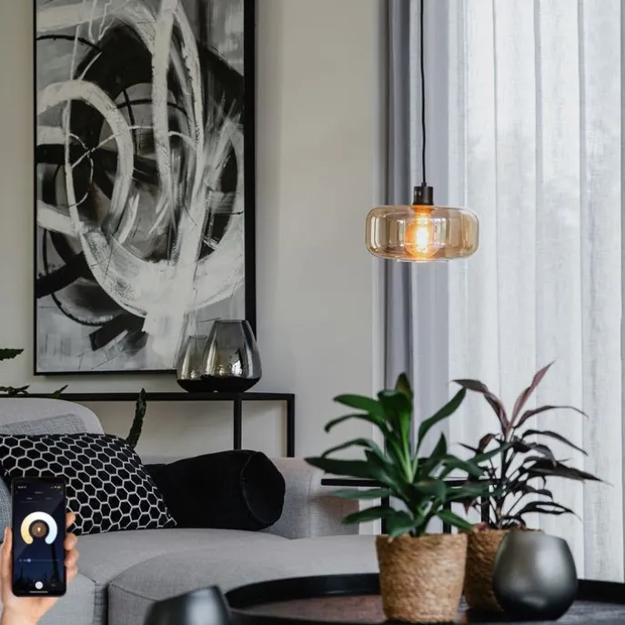 Smart hanglamp zwart met amber glas incl. Wifi A60 – Bizle