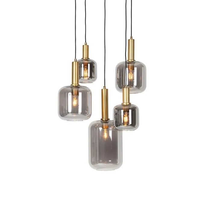 Smart hanglamp zwart met goud met smoke glas incl. 5 Wifi A60 – Zuzanna