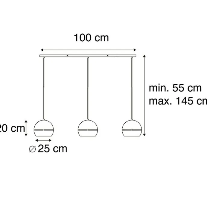 Smart hanglamp zwart met gouden binnenkant 3-lichts incl. Wifi ST64 – Buell