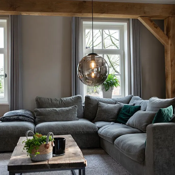 Met hanglamp Pallon maak jij jouw interieur helemaal af! Hij komt het beste tot zijn recht in een Art Deco interieur. Het armatuur is chroom met zwart en gemaakt van smoke glas met staal. De hanglamp heeft een diameter van 30 cm en een hoogte van 156 cm. Door het hoge lichtvermogen van maximaal 400 lumen is de hanglamp geschikt voor functionele verlichting. Lamp vergeten uit te doen? Bedien op afstand je verlichting met je smartphone of smart home systeem. Pallon is dimbaar, waardoor je eenvoudig de sfeer aanpast. Twijfel niet langer en ga voor Pallon!