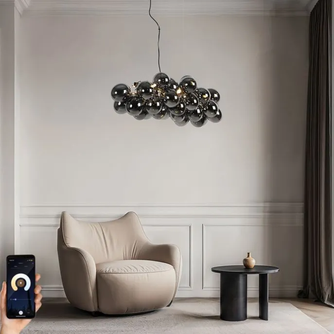 Voeg een vleugje luxe en slimme technologie toe aan je interieur met de Uvas hanglamp! Deze prachtige hanglamp, met een stijlvolle zwarte afwerking en smoke glas, zorgt voor een moderne en verfijnde uitstraling in elke ruimte. Met maar liefst acht lichtpunten biedt de Uvas hanglamp voldoende verlichting voor elke kamer, terwijl de slimme WiFi G9 lampen je de mogelijkheid geven om de lichtintensiteit en kleurtemperatuur aan te passen aan jouw wensen, variërend van 2700K tot 6497K1.Let op! Deze hanglamp is compatibel met Zigbee-systemen, waardoor je hem eenvoudig kunt integreren in je slimme huis. Zorg ervoor dat je Zigbee-hub en accessoires gebruikt om optimaal te profiteren van de slimme functies en bediening.