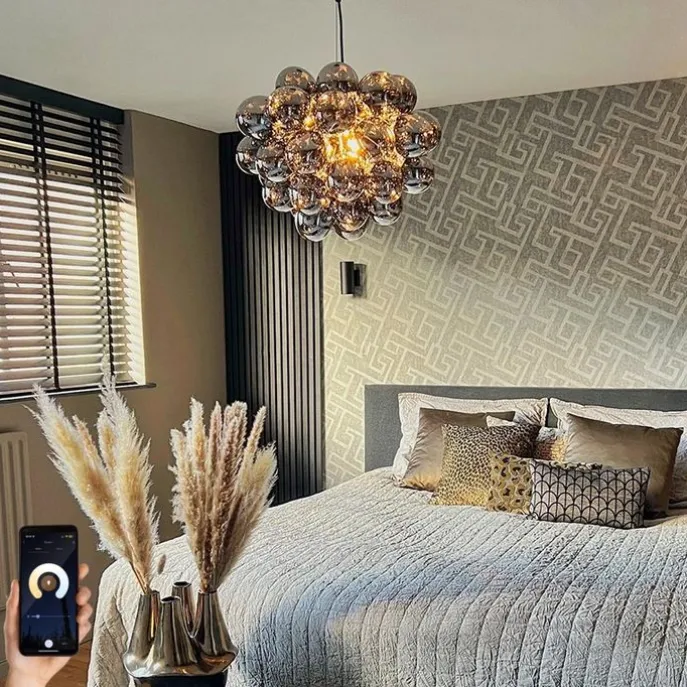 Voeg een vleugje elegantie en slimme technologie toe aan je interieur met deze prachtige smart hanglamp. De lamp is ontworpen met een stijlvolle zwarte afwerking en smoke glas, wat zorgt voor een moderne en verfijnde uitstraling. Met acht lichtpunten biedt deze hanglamp voldoende verlichting voor elke ruimte, terwijl de slimme WiFi G9 lampen je de mogelijkheid geven om de lichtintensiteit en kleurtemperatuur aan te passen aan jouw wensen, variërend van 2700K tot 6500K.Let op! Deze hanglamp is compatibel met Zigbee-systemen, waardoor je hem eenvoudig kunt integreren in je slimme huis. Zorg ervoor dat je Zigbee-hub en accessoires gebruikt om optimaal te profiteren van de slimme functies en bediening.