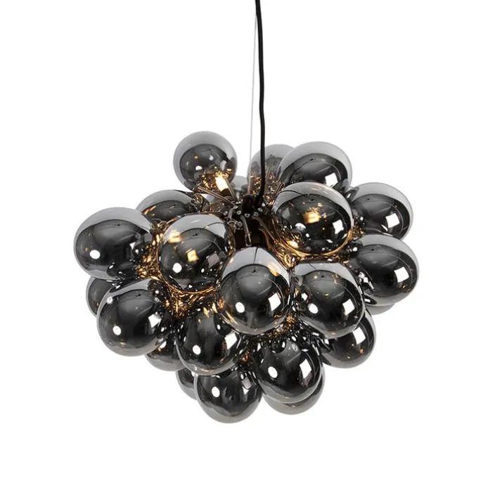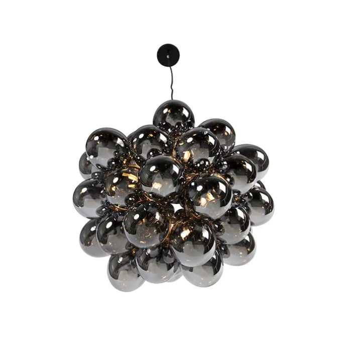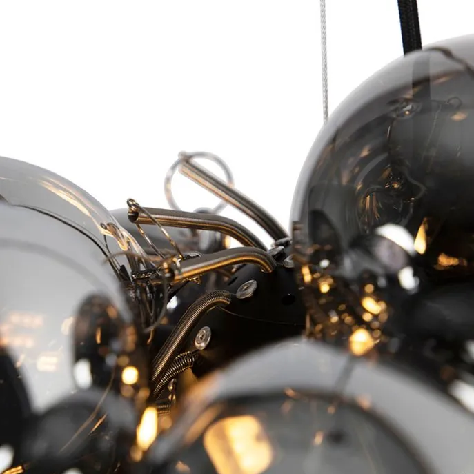Smart hanglamp zwart met smoke glas 8-lichts rond incl. 8 Wifi G9 – Uvas