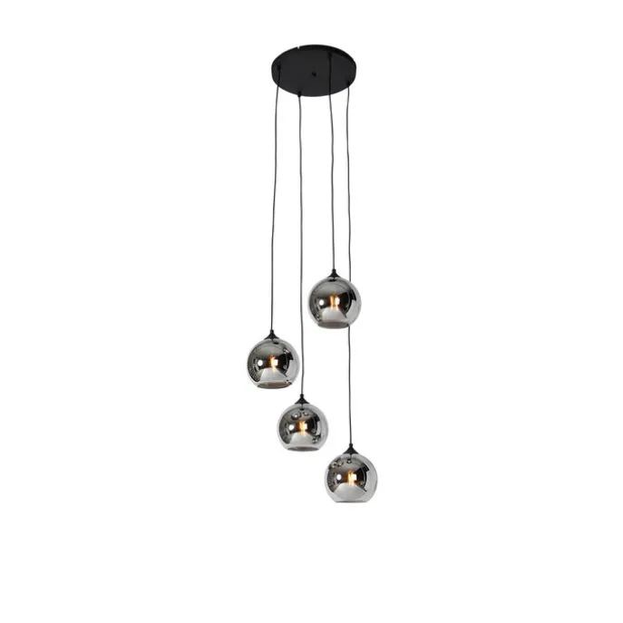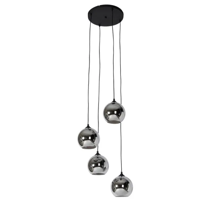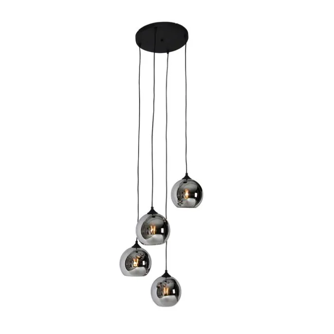 Smart hanglamp zwart met smoke glas incl. 4 Wifi A60 – Wallace