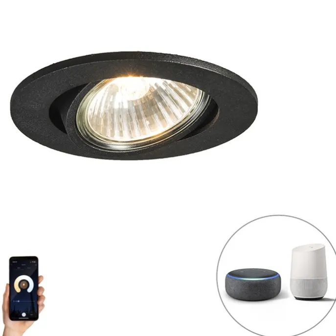 Smart inbouwspot zwart kantelbaar incl. Wifi GU10 – Cisco