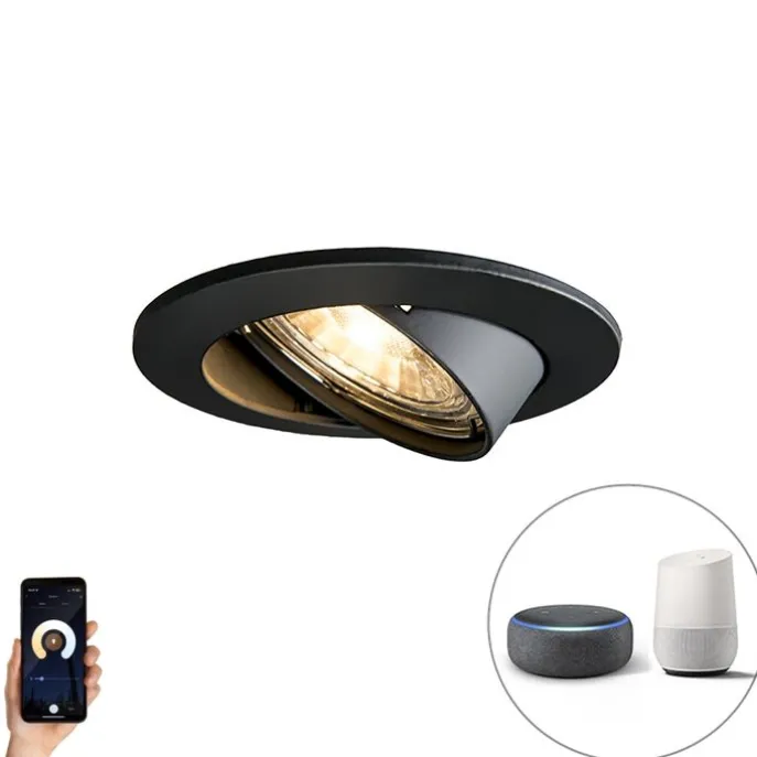 Smart inbouwspot zwart kantelbaar incl. Wifi GU10 – Edu