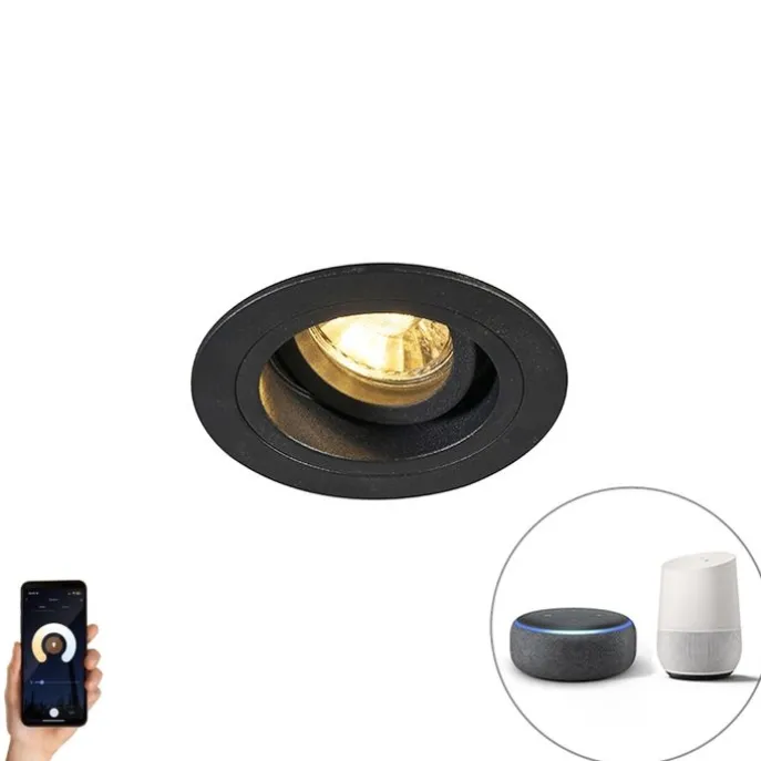 Smart inbouwspot zwart rond incl. wifi GU10 – Chuck