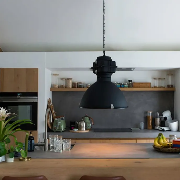 De Sicko zorgt in ieder interieur voor een stoere touch! De kap heeft een hoogte van 60 cm en een diameter van 53 cm. Het montageplaatje voor aan het plafond heeft een diameter van 12 cm. De totale hoogte is 215 cm, deze kun je bij de installatie eventueel nog inkorten. De kap wordt afgemaakt met glazen blender aan de onderkant. Dat zorgt voor een aangename lichtverdeling in huis. Deze stoere hanglamp wordt geleverd inclusief een smart E27 A60 lichtbron die je in elke gewenste kleur kunt instellen met je telefoon en/of smart home assistant. De lichtbron verbruikt maximaal 8,5 watt en heeft gemiddeld 15.000 branduren. Je stelt de perfecte lichtsterkte (tot 806 lumen) en de perfecte lichtkleur (tussen 2200 en 4000 Kelvin) zelf in om de perfecte sfeer te creëren. Kies voor een aangename sfeer in huis met deze ruwe hanglamp!