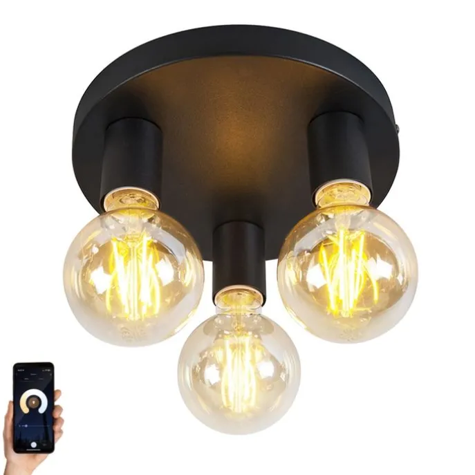 Smart moderne plafondlamp zwart incl. 3 WiFi G95 – Facil