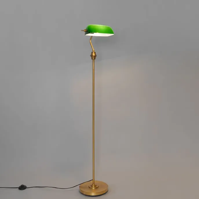 Smart notaris vloerlamp brons met groen glas incl. Wifi A60- Banker