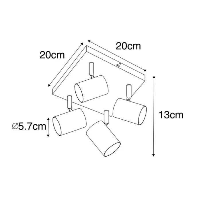 Smart plafondlamp wit vierkant incl. 4 Wifi GU10 – Jeana