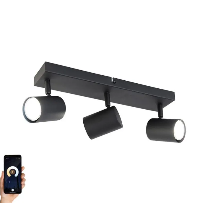 Smart plafondlamp zwart rechthoekig incl. 3 Wifi GU10 – Jeana