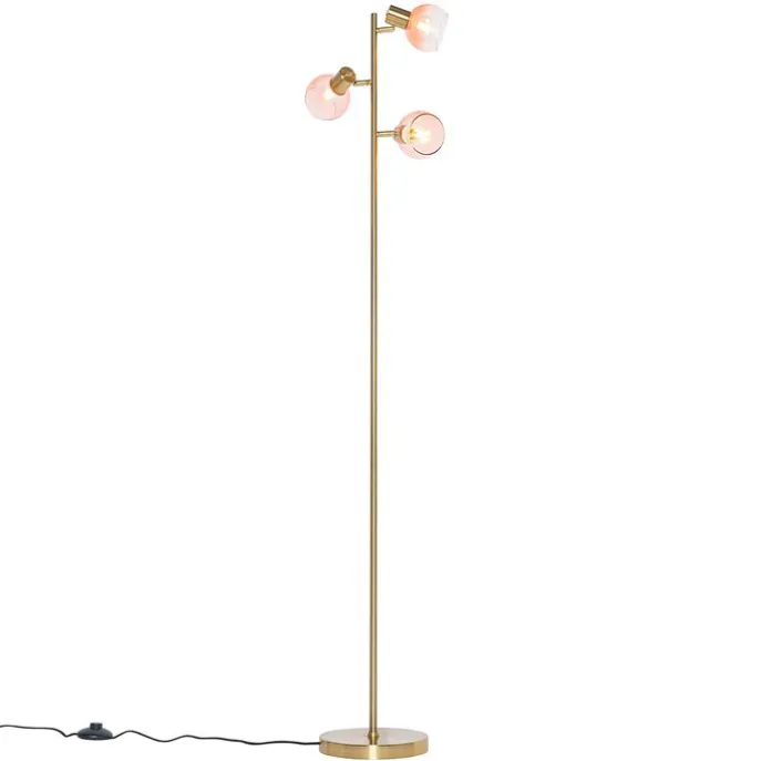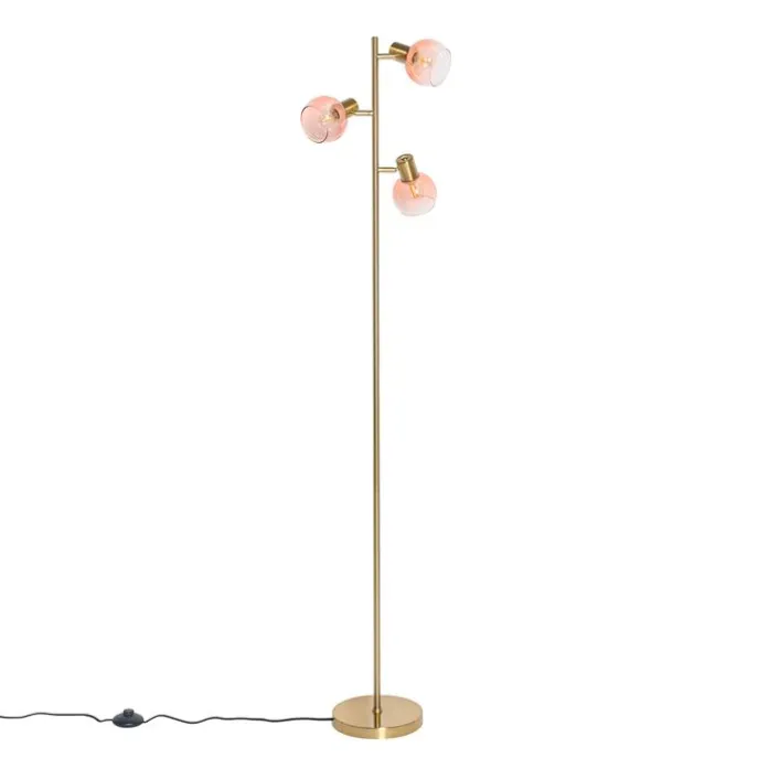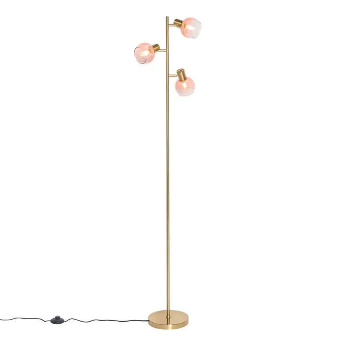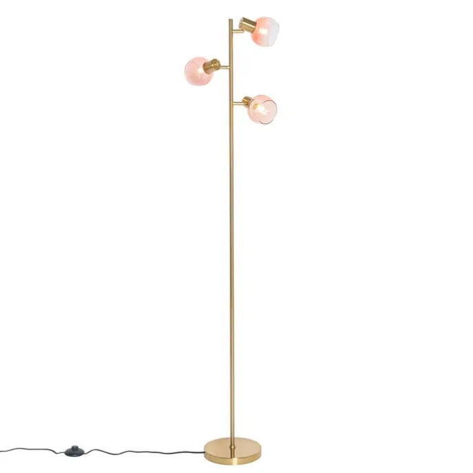 Smart vloerlamp goud met roze glas 3-lichts incl. 3 Wifi P45 – Vidro