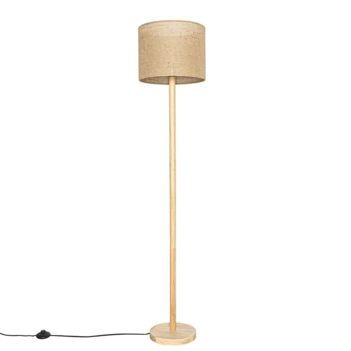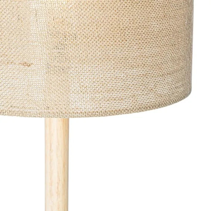 Smart vloerlamp hout met linnen kap naturel 32 cm incl. Wifi A60 – Mels