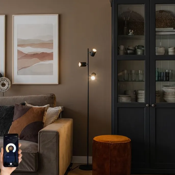 Smart vloerlamp zwart 3-lichts incl. 3 Wifi GU10 50mm – Jeana