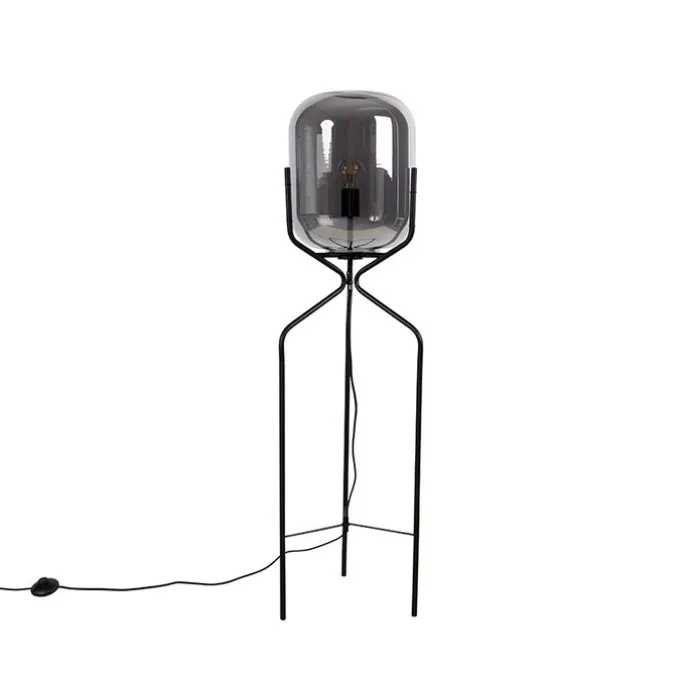 Smart vloerlamp zwart incl. WiFi A60 smoke glas – Bliss