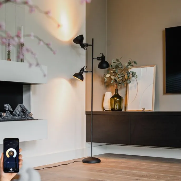 Een lamp die sfeer, stijl én slimme technologie combineert? Maak kennis met Tommy! Deze zwarte 3-lichts vloerlamp met goudkleurige accenten is een echte sfeermaker in elk modern of industrieel interieur. De verstelbare kapjes zorgen voor functioneel licht precies waar jij het wilt: ideaal naast de bank, in een leeshoek of als extra sfeerverlichting.Maar Tommy doet meer dan alleen mooi zijn – dankzij de drie slimme Wifi P45 lichtbronnen pas je de lichtsterkte en -kleur eenvoudig aan via je smartphone. Van helder wit tot warm goud: jij hebt de controle, met één druk op de knop.Til je interieur én gemak naar een hoger niveau met Tommy – de slimme lamp die jouw ruimte laat leven!