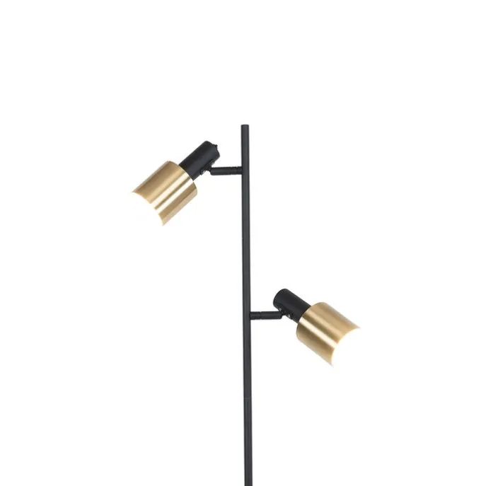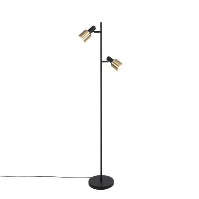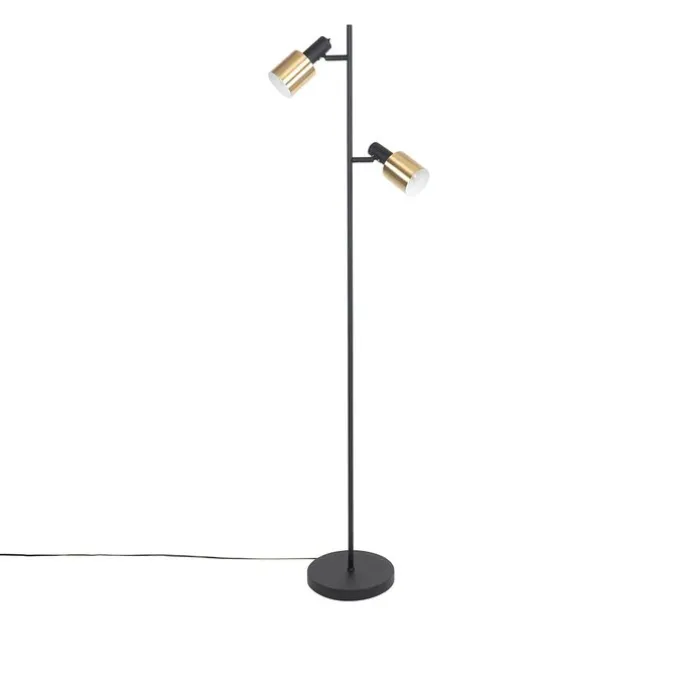 Smart vloerlamp zwart met goud incl. 2 Wifi A60 – Stijn