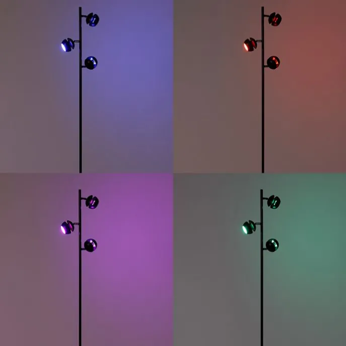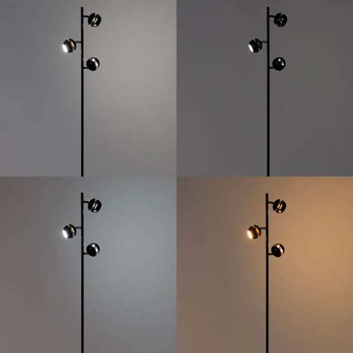 Smart vloerlamp zwart met gouden binnenkant incl. 3 Wifi GU10 – Buell