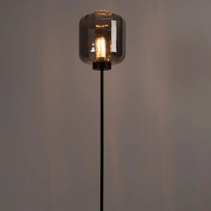 Smart vloerlamp zwart met smoke glas incl. Wifi ST64 – Qara