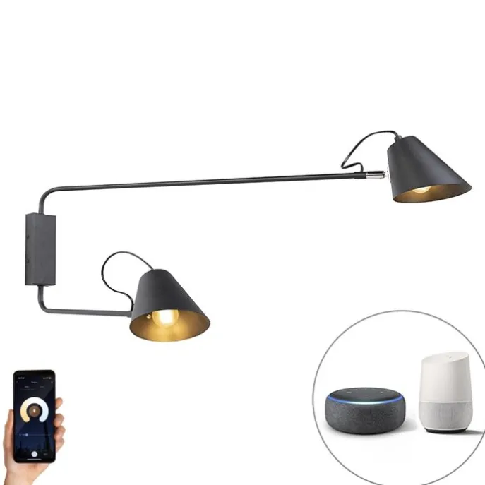 Smart wandlamp zwart 2-lichts verstelbaar incl. Wifi A60 – Lune