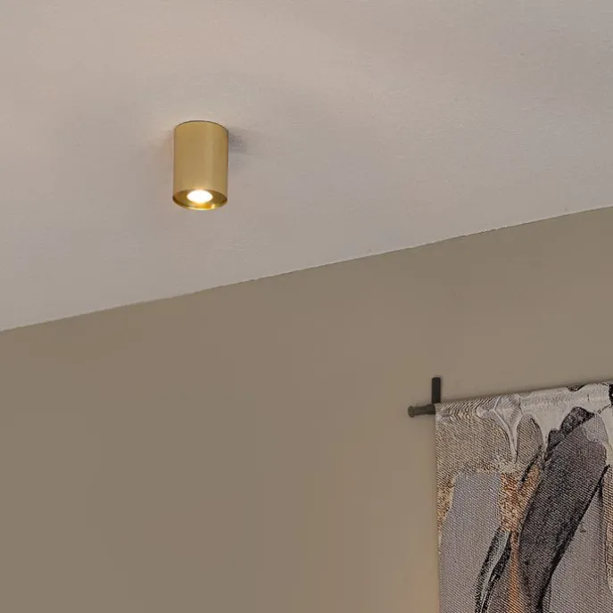 Deze Rondoo up opbouwspot past in ieder interieur. Hij heeft een diameter van 9,5 cm en een hoogte van 12,5 cm. De afmeting van de montageplaat heeft een diameter van 9,5 cm. Deze spot is gemaakt van aluminium in een goud/messing kleur en heeft een luxe kwalitatieve uitstraling. De plafondpot heeft een GU10 fitting . Met een GU10 lichtbronnetje van maximum 50 Watt maak je hem helemaal af. Een leuk extraatje aan deze plafondspot is dat hij kantelbaar is: verlicht dus je ruimte hoe jij het wil! De Rondoo up is ook dimbaar (dimmer niet inbegrepen). Simpel maar oh zo stijlvol voor jouw plafond deze opbouwspot Rondoo up.