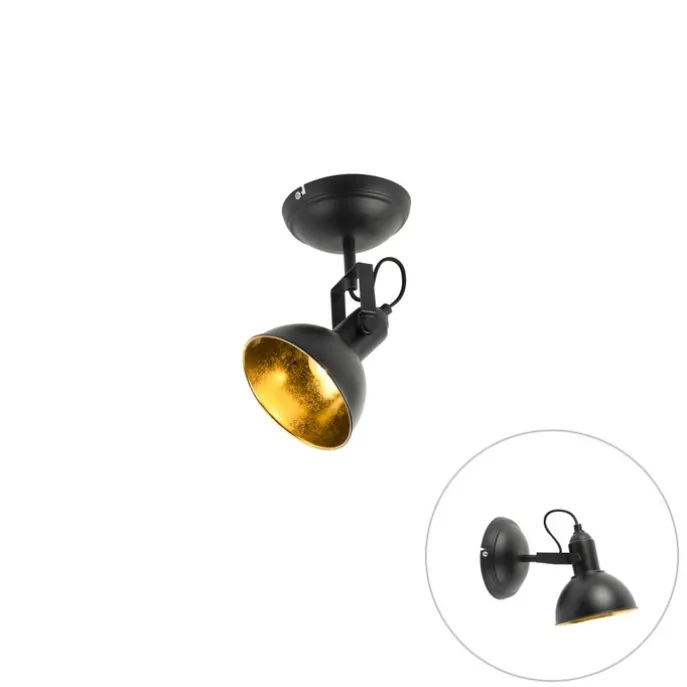 Spot zwart met goud 1-lichts draai- en kantelbaar – Tommy