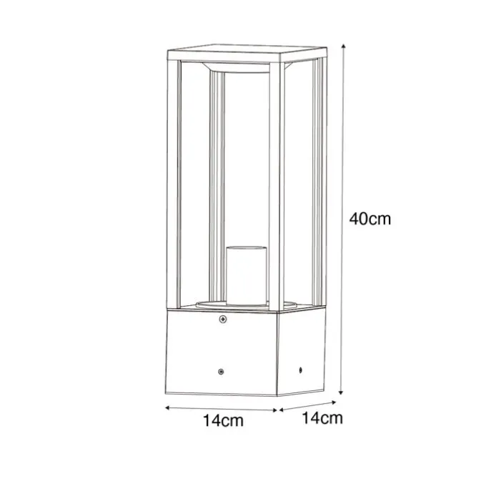 | Afmetingen algemeen | Hoogte 40 cm – lengte 14 cm – breedte 14 cm |