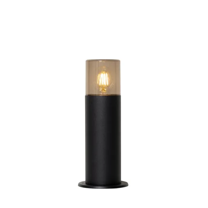Staande buitenlamp zwart met smoke kap 30 cm IP44 – Odense