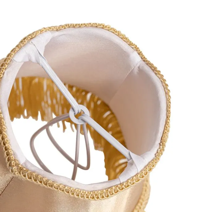 Authentiek in een nieuw jasje. Deze prachtige lampenkap Granny heeft het ontwerp van de oude lampenkap van je oma, maar dan met een nieuw stofje. Deze lampenkap past perfect in ieder interieur doordat het iets ouds maar zeker ook iets nieuws en moderns heeft. De lampenkap heeft een diameter van 12 cm en een hoogte van 15 cm. Let op! Dit is dus enkel de lampenkap, je dient zelf nog een armatuur aan te schaffen. Door de prachtige stof en de mooie gouden kleur is deze hanglamp Granny zeker een eye-catcher in jouw interieur!