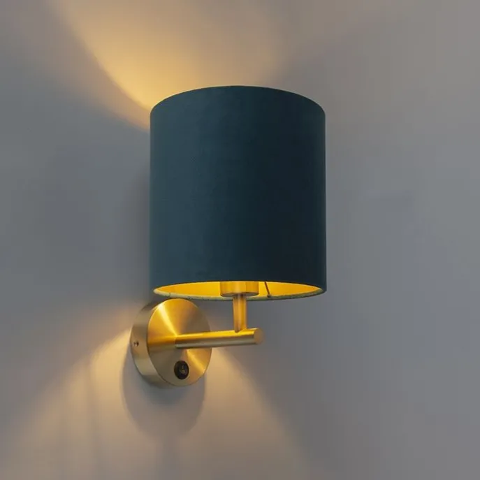 Strakke wandlamp goud met blauwe velours kap – Matt