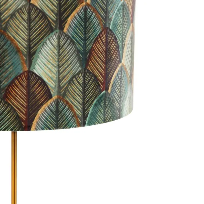 Tafellamp brons met velours lampenkap blad dessin met gouden binnenkant – Parte