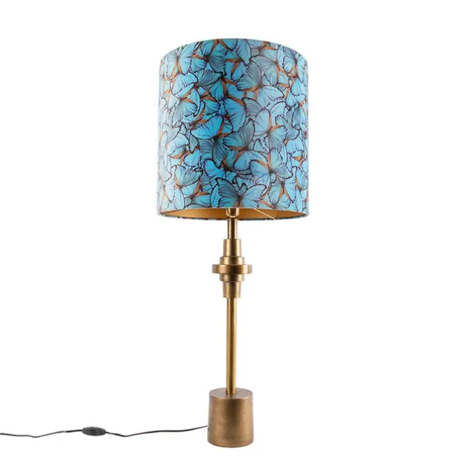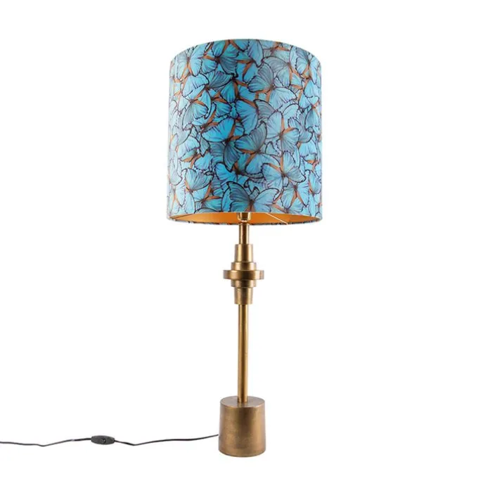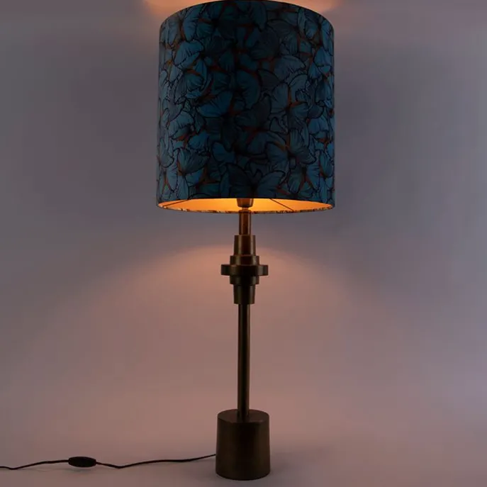 Tafellamp brons velours kap vlinder dessin 40 cm – Diverso