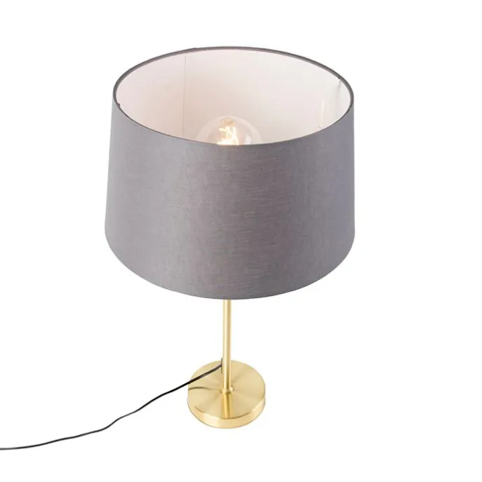 Tafellamp goud/messing met linnen kap grijs 35 cm – Parte