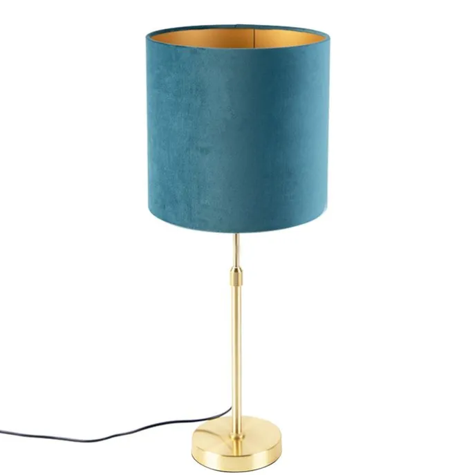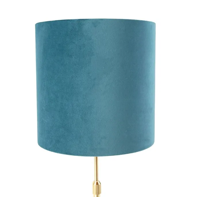 Tafellamp goud/messing met velours kap blauw 25 cm – Parte