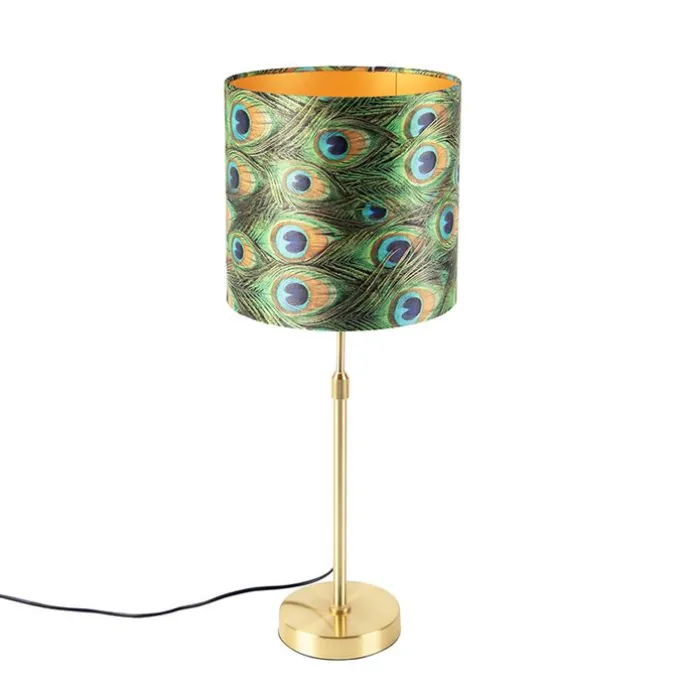 Tafellamp goud/messing met velours kap pauw 25 cm – Parte