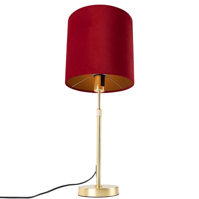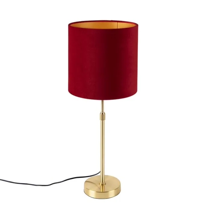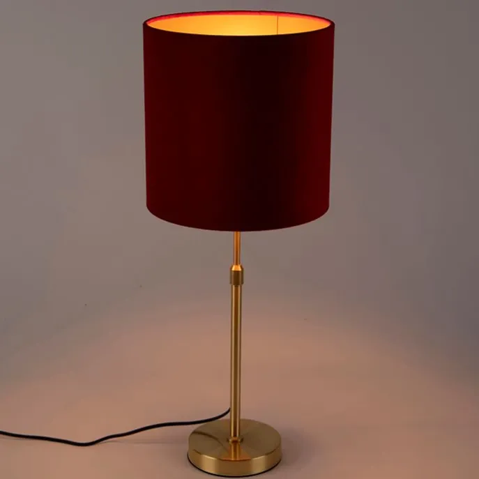Tafellamp goud/messing met velours kap rood 25 cm – Parte