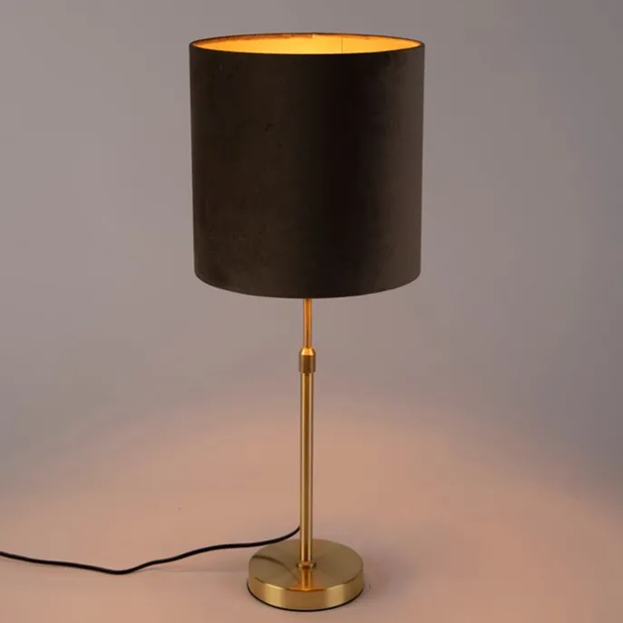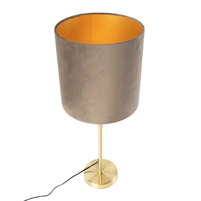Tafellamp goud/messing met velours kap taupe 25 cm – Parte
