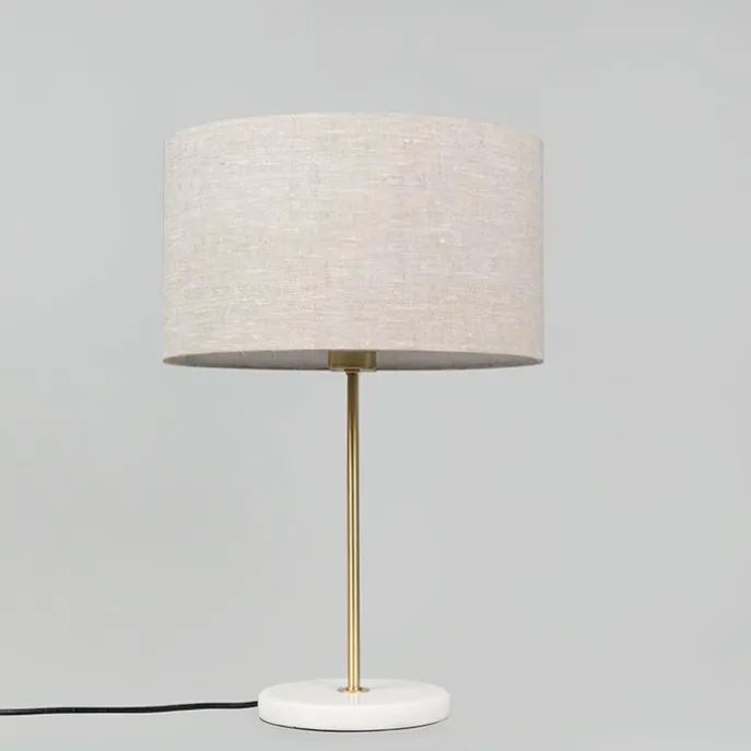Breng sfeer in je interieur met onze Kaso tafellamp. Het is een lamp voor de liefhebber van strakke vormgeving en eenvoudige lijnen. De lamp heeft een hoogte van 55 cm en een diameter van 35 cm. De voet heeft een diameter van 18 cm. De Kaso wordt tevens met kabel geleverd waarvan de lengte 200 cm is. De combinatie van de licht grijze kap, het goud/messing en de marmeren voet zorgen voor rust in jouw ruimte: een leuk nachtlampje, of een decoratieve tafellamp in de woonkamer. De lampenkap van de tafellamp is vervangbaar waardoor je zelf kunt bepalen wanneer het tijd is voor een nieuwe uitstraling. Kies nog voor een lichtbron passend in een E27 fitting (max. 60 Watt). De lamp is tevens dimbaar met externe dimmer. Breng warm en gezellig licht in huis met deze tafellamp.
